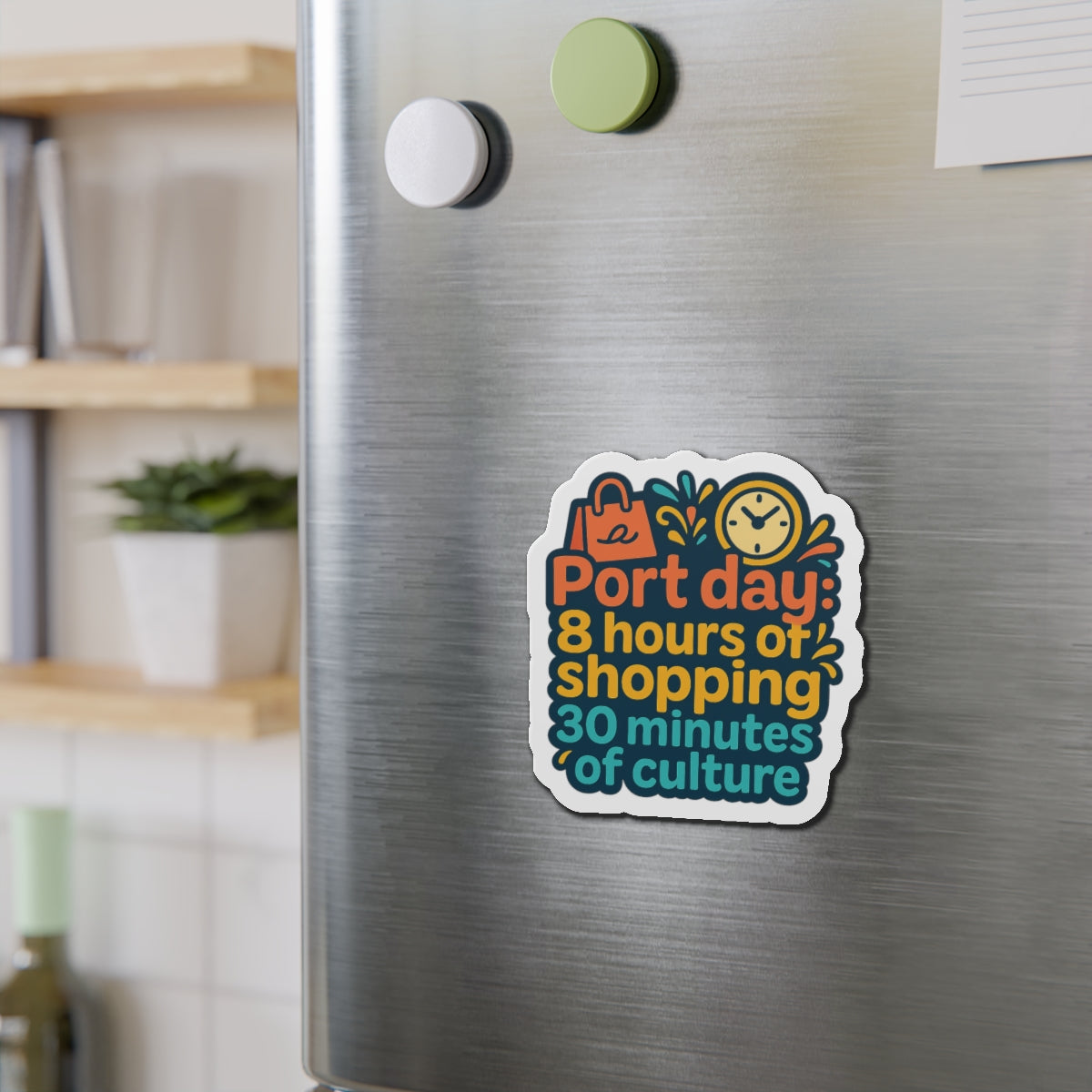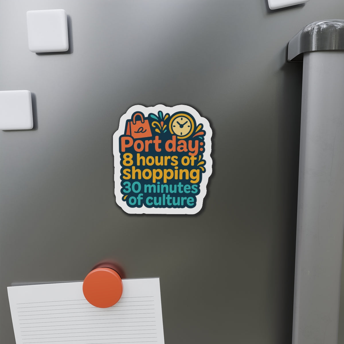 Make your stateroom truly unforgettable with the "Port Day Priorities" magnet, a vibrant declaration of your cruise philosophy! This durable, die-cut magnet attaches effortlessly to your cabin door, instantly transforming it into a personalized beacon of fun and individuality. Crafted to withstand the unique environment of a cruise ship, its strong magnetic hold ensures it stays put, even on breezy decks at sea. It's not just a decoration; it's a conversation starter, a smile inducer, and a charming reminder of all the exciting port day adventures awaiting you and your fellow travelers.